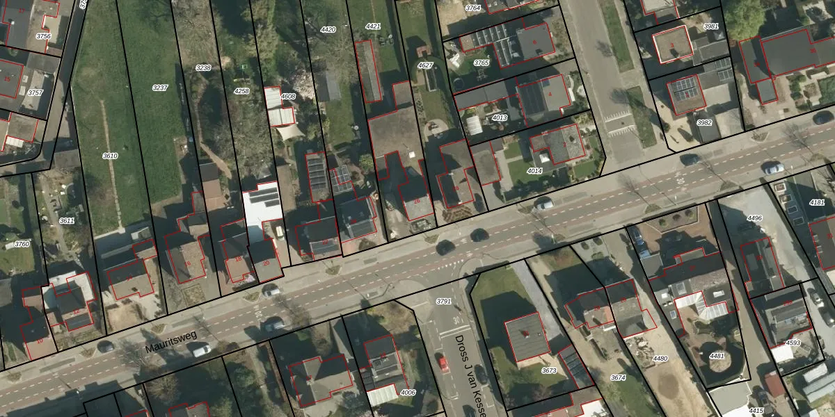 Het perceel waarop Mauritsweg 26 staat heeft een oppervlakte van 1021 m². Dit is een zeer groot perceel. De perceeloppervlakte wordt geregistreerd door het Kadaster. Gedetailleerde informatie over de maten van dit perceel kunt u vinden in het rapport Kadastrale kaart met maatvoering van Mauritsweg 26.