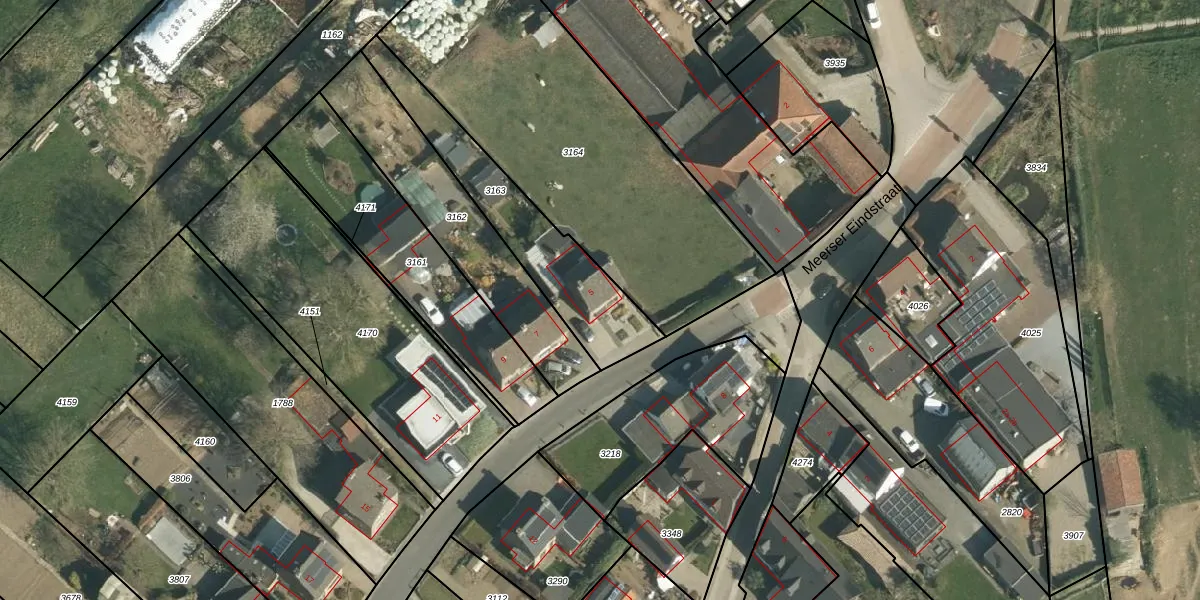 Meerser Eindstraat 5 is gelegen op kadastraal perceel STE00D3163. Deze kadastrale aanduiding is uniek en wordt gebruikt door het Kadaster om eigendomsrechten en andere zakelijke rechten vast te leggen. Het perceel maakt onderdeel uit van de kadastrale gemeente Stein.