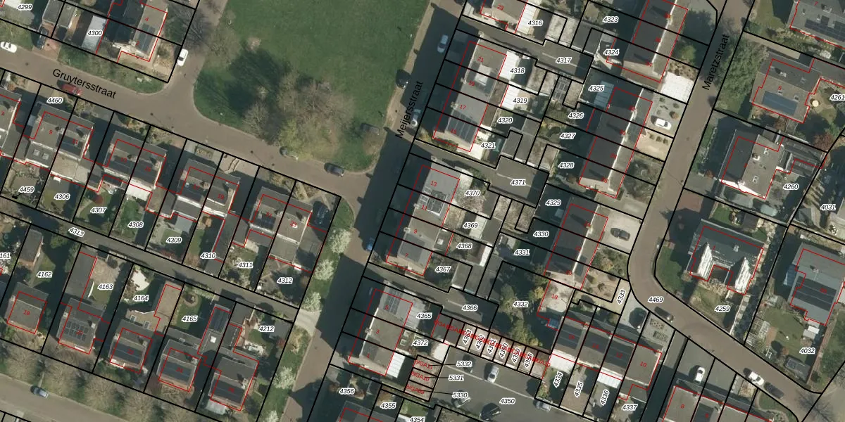 Het perceel waarop Meijersstraat 11 staat heeft een oppervlakte van 180 m². Dit is een middelgroot perceel. De perceeloppervlakte wordt geregistreerd door het Kadaster. Gedetailleerde informatie over de maten van dit perceel kunt u vinden in het rapport Kadastrale kaart met maatvoering van Meijersstraat 11.