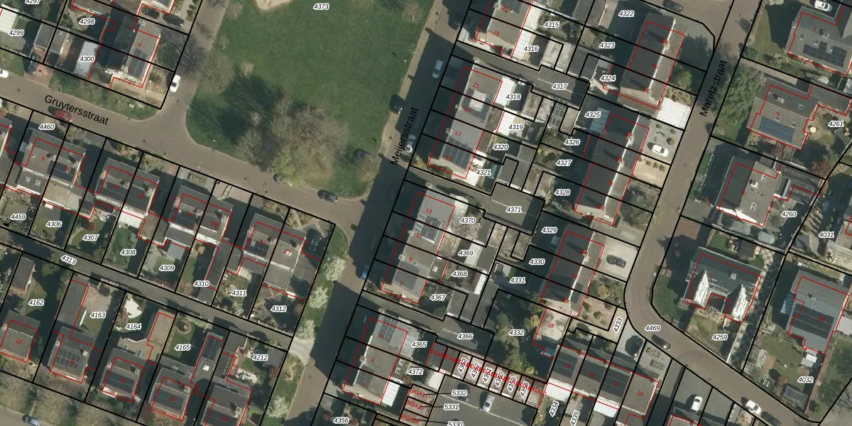 Het perceel waarop Meijersstraat 13 staat heeft een oppervlakte van 181 m². Dit is een middelgroot perceel. De perceeloppervlakte wordt geregistreerd door het Kadaster. Gedetailleerde informatie over de maten van dit perceel kunt u vinden in het rapport Kadastrale kaart met maatvoering van Meijersstraat 13.