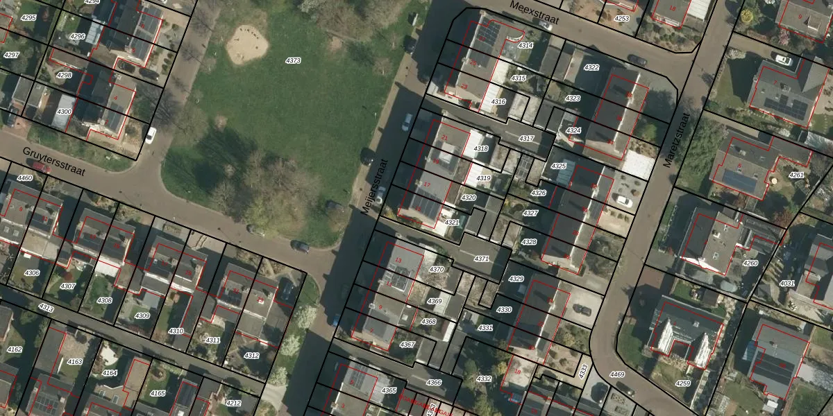 Meijersstraat 15 is gelegen op kadastraal perceel STE00B4321. Deze kadastrale aanduiding is uniek en wordt gebruikt door het Kadaster om eigendomsrechten en andere zakelijke rechten vast te leggen. Het perceel maakt onderdeel uit van de kadastrale gemeente Stein.