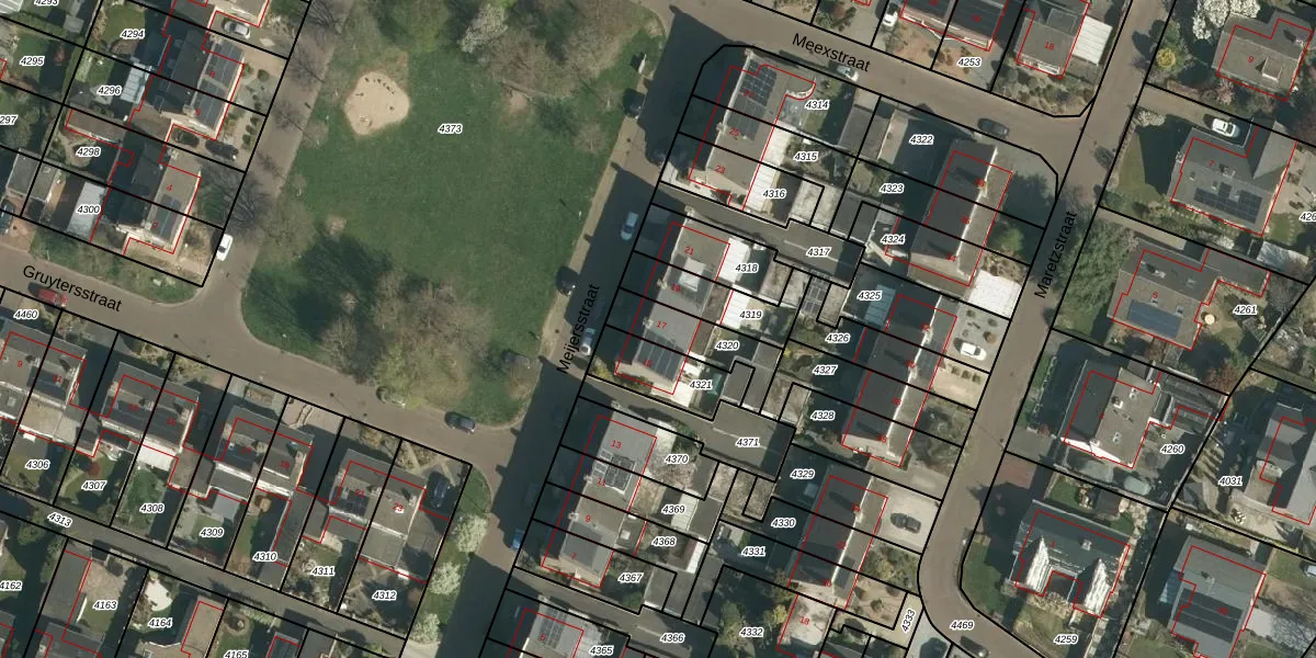 Het perceel waarop Meijersstraat 17 staat heeft een oppervlakte van 169 m². Dit is een middelgroot perceel. De perceeloppervlakte wordt geregistreerd door het Kadaster. Gedetailleerde informatie over de maten van dit perceel kunt u vinden in het rapport Kadastrale kaart met maatvoering van Meijersstraat 17.