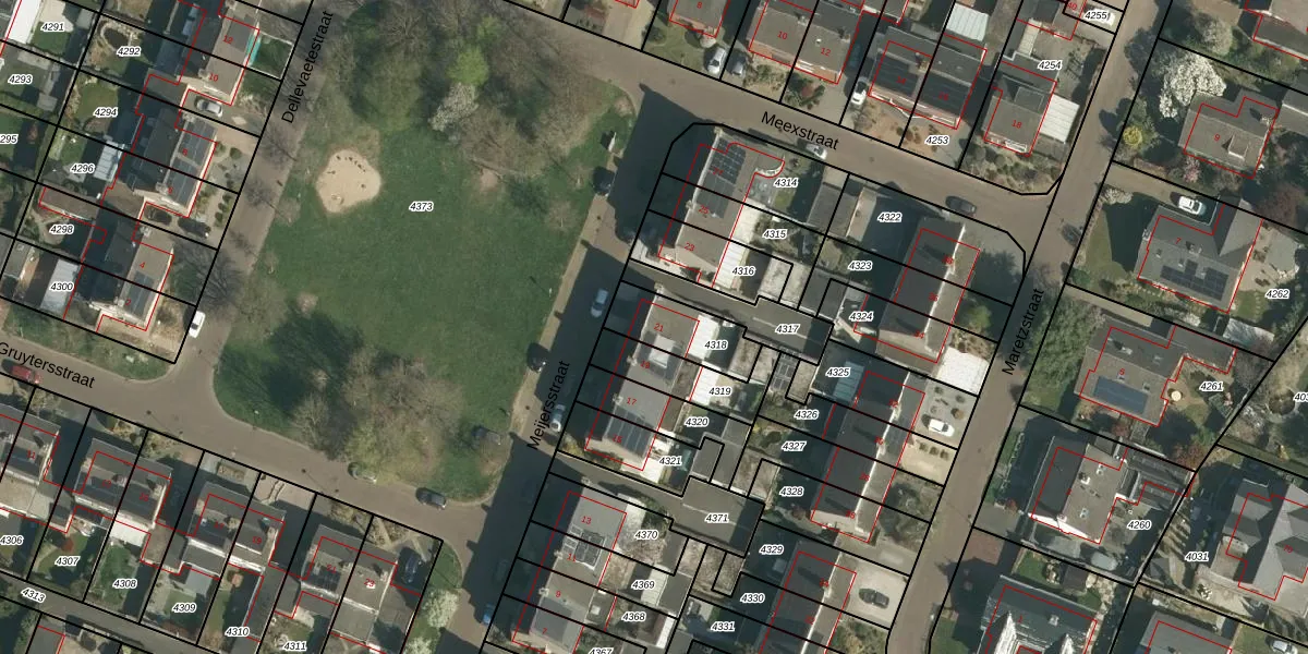 Het perceel waarop Meijersstraat 21 staat heeft een oppervlakte van 181 m². Dit is een middelgroot perceel. De perceeloppervlakte wordt geregistreerd door het Kadaster. Gedetailleerde informatie over de maten van dit perceel kunt u vinden in het rapport Kadastrale kaart met maatvoering van Meijersstraat 21.