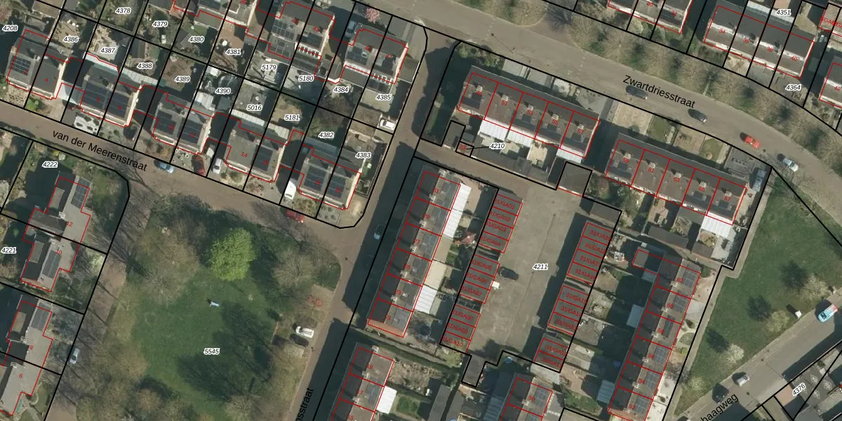 Het perceel waarop Meskensstraat 29 staat heeft een oppervlakte van 7395 m². Dit is een zeer groot perceel. De perceeloppervlakte wordt geregistreerd door het Kadaster. Gedetailleerde informatie over de maten van dit perceel kunt u vinden in het rapport Kadastrale kaart met maatvoering van Meskensstraat 29.
