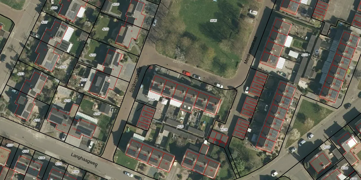 Het perceel waarop Meskensstraat 5 staat heeft een oppervlakte van 3010 m². Dit is een zeer groot perceel. De perceeloppervlakte wordt geregistreerd door het Kadaster. Gedetailleerde informatie over de maten van dit perceel kunt u vinden in het rapport Kadastrale kaart met maatvoering van Meskensstraat 5.