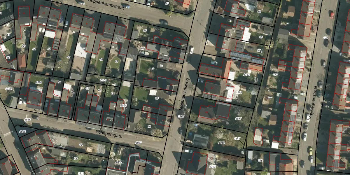 Gebruik de zoekbalk of klik op een perceel voor informatie over de adressen binnen dit perceel.