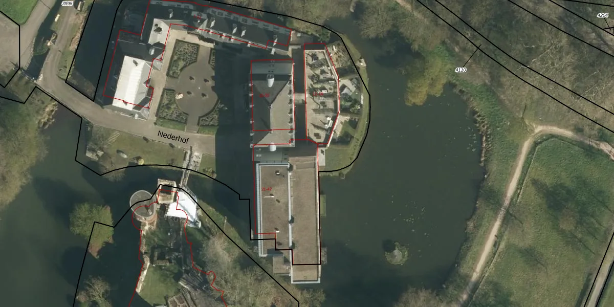 Het perceel waarop Nederhof 37 staat heeft een oppervlakte van 8927 m². Dit is een zeer groot perceel. De perceeloppervlakte wordt geregistreerd door het Kadaster. Gedetailleerde informatie over de maten van dit perceel kunt u vinden in het rapport Kadastrale kaart met maatvoering van Nederhof 37.