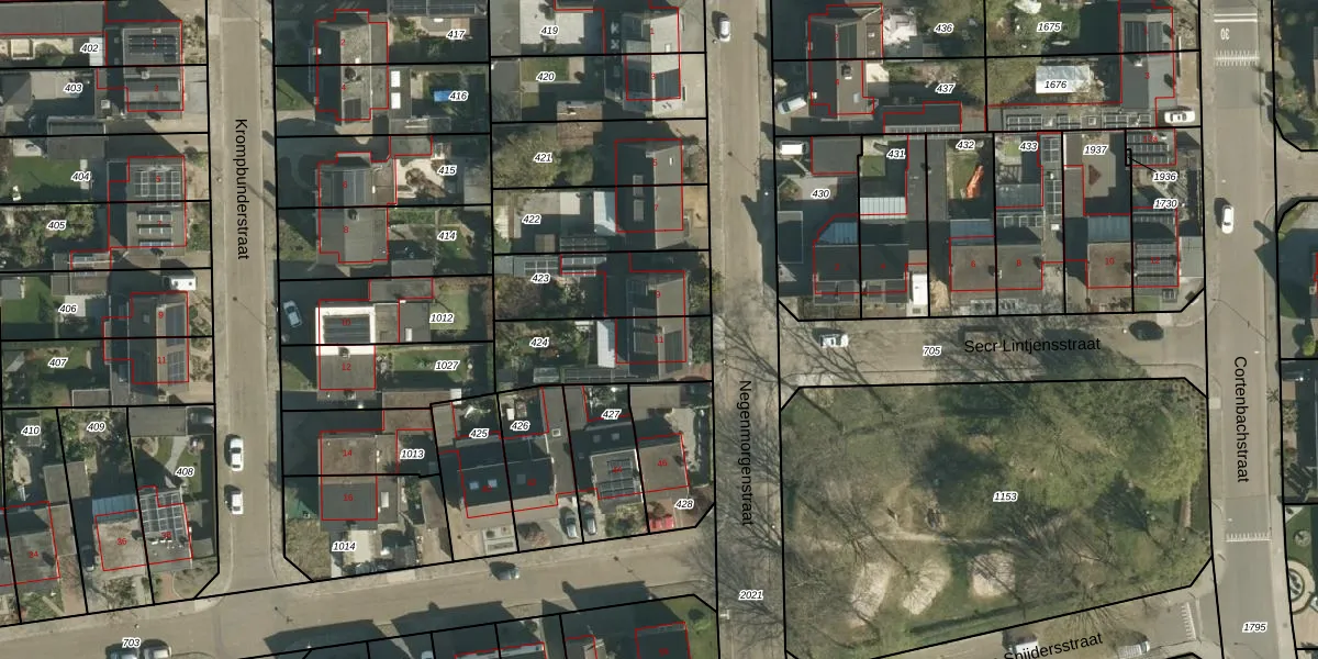 Het perceel waarop Negenmorgenstraat 11 staat heeft een oppervlakte van 335 m². Dit is een groot perceel. De perceeloppervlakte wordt geregistreerd door het Kadaster. Gedetailleerde informatie over de maten van dit perceel kunt u vinden in het rapport Kadastrale kaart met maatvoering van Negenmorgenstraat 11.