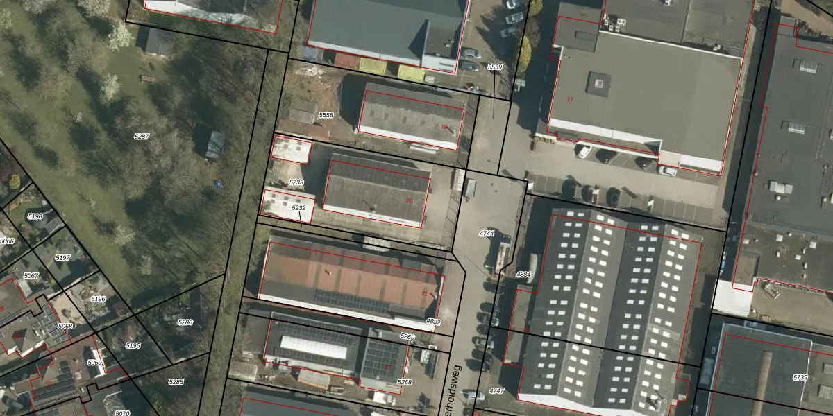 Nijverheidsweg 20 is gelegen op kadastraal perceel STE00B5233. Deze kadastrale aanduiding is uniek en wordt gebruikt door het Kadaster om eigendomsrechten en andere zakelijke rechten vast te leggen. Het perceel maakt onderdeel uit van de kadastrale gemeente Stein.