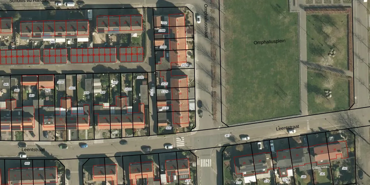 Gebruik de zoekbalk of klik op een perceel voor informatie over de adressen binnen dit perceel.