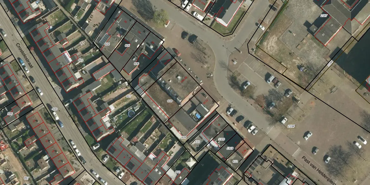 Het adres is gelegen op perceel 608 in de sectie G en de kadastrale gemeente Stein. De kadastrale aanduiding is aldus STE00-G-608. Het perceel is kleiner dan gemiddeld in Stein. Het perceel is 556 m² groot, terwijl het gemiddelde ligt op 1690,95 m². Het grootste perceel in de kadastrale gemeente is 33,0 ha. Het kleinste perceel heeft een oppervlakte van 0 m². Er zijn 20 adressen aanwezig op het perceel. De huidige grenzen van het perceel zijn digitaal in de Basisregistratie Kadaster (BRK) geregistreerd op 30-07-2008.