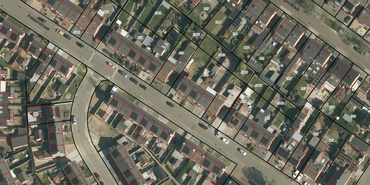 Peldenstraat 31 is gelegen op kadastraal perceel STE00G619. Deze kadastrale aanduiding is uniek en wordt gebruikt door het Kadaster om eigendomsrechten en andere zakelijke rechten vast te leggen. Het perceel maakt onderdeel uit van de kadastrale gemeente Stein.