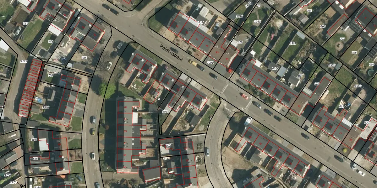 Peldenstraat 52 is gelegen op kadastraal perceel STE00G1004. Deze kadastrale aanduiding is uniek en wordt gebruikt door het Kadaster om eigendomsrechten en andere zakelijke rechten vast te leggen. Het perceel maakt onderdeel uit van de kadastrale gemeente Stein.