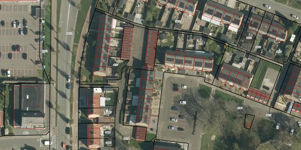 Pennersstraat 18 is gelegen op kadastraal perceel STE00B4238. Deze kadastrale aanduiding is uniek en wordt gebruikt door het Kadaster om eigendomsrechten en andere zakelijke rechten vast te leggen. Het perceel maakt onderdeel uit van de kadastrale gemeente Stein.