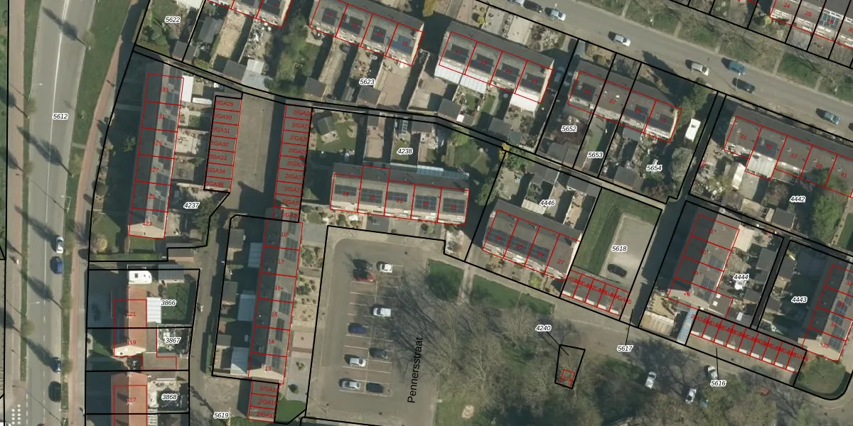 Het perceel waarop Pennersstraat 22 staat heeft een oppervlakte van 2100 m². Dit is een zeer groot perceel. De perceeloppervlakte wordt geregistreerd door het Kadaster. Gedetailleerde informatie over de maten van dit perceel kunt u vinden in het rapport Kadastrale kaart met maatvoering van Pennersstraat 22.