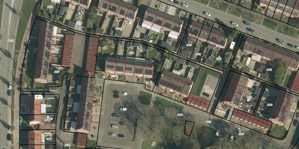 Het perceel waarop Pennersstraat 23 staat heeft een oppervlakte van 2100 m². Dit is een zeer groot perceel. De perceeloppervlakte wordt geregistreerd door het Kadaster. Gedetailleerde informatie over de maten van dit perceel kunt u vinden in het rapport Kadastrale kaart met maatvoering van Pennersstraat 23.