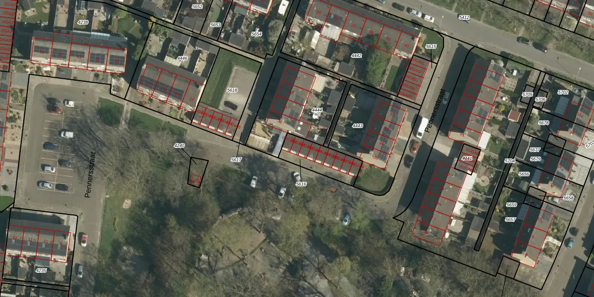 Het perceel waarop Pennersstraat 28-GA02 staat heeft een oppervlakte van 250 m². Dit is een middelgroot perceel. De perceeloppervlakte wordt geregistreerd door het Kadaster. Gedetailleerde informatie over de maten van dit perceel kunt u vinden in het rapport Kadastrale kaart met maatvoering van Pennersstraat 28-GA02.
