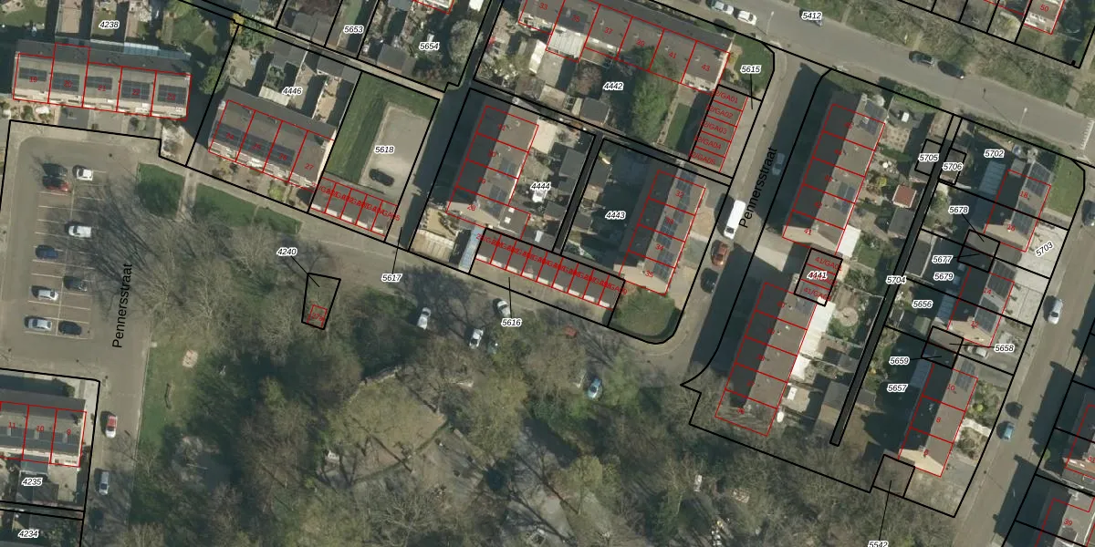 Pennersstraat 28-GA05 is gelegen op kadastraal perceel STE00B5616. Deze kadastrale aanduiding is uniek en wordt gebruikt door het Kadaster om eigendomsrechten en andere zakelijke rechten vast te leggen. Het perceel maakt onderdeel uit van de kadastrale gemeente Stein.