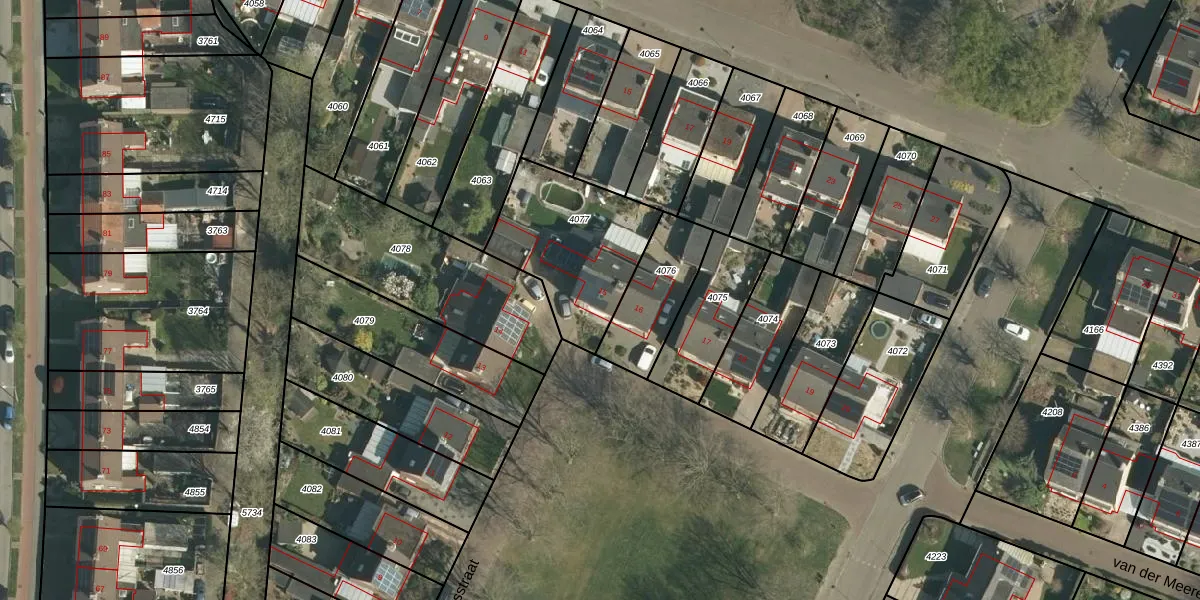 Gebruik de zoekbalk of klik op een perceel voor informatie over de adressen binnen dit perceel.