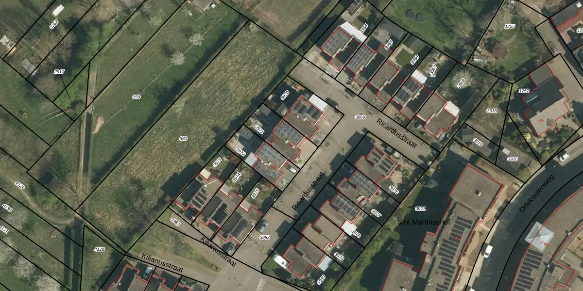 Ricardusstraat 12 is gelegen op kadastraal perceel STE00D3971. Deze kadastrale aanduiding is uniek en wordt gebruikt door het Kadaster om eigendomsrechten en andere zakelijke rechten vast te leggen. Het perceel maakt onderdeel uit van de kadastrale gemeente Stein.