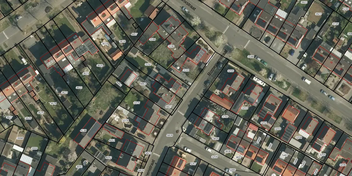 Het perceel waarop Romeinenstraat 11 staat heeft een oppervlakte van 350 m². Dit is een groot perceel. De perceeloppervlakte wordt geregistreerd door het Kadaster. Gedetailleerde informatie over de maten van dit perceel kunt u vinden in het rapport Kadastrale kaart met maatvoering van Romeinenstraat 11.