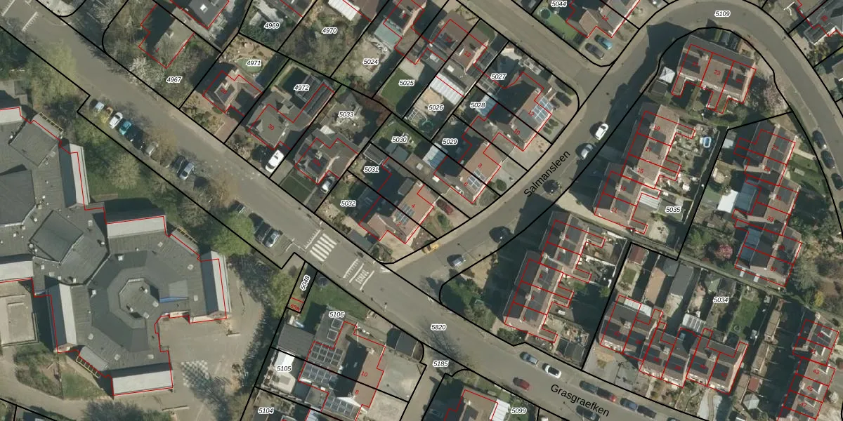 Gebruik de zoekbalk of klik op een perceel voor informatie over de adressen binnen dit perceel.