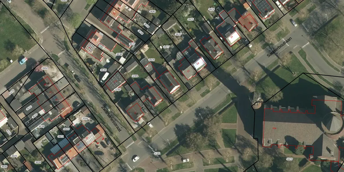 Sanderboutlaan 23 is gelegen op kadastraal perceel STE00B3428. Deze kadastrale aanduiding is uniek en wordt gebruikt door het Kadaster om eigendomsrechten en andere zakelijke rechten vast te leggen. Het perceel maakt onderdeel uit van de kadastrale gemeente Stein.