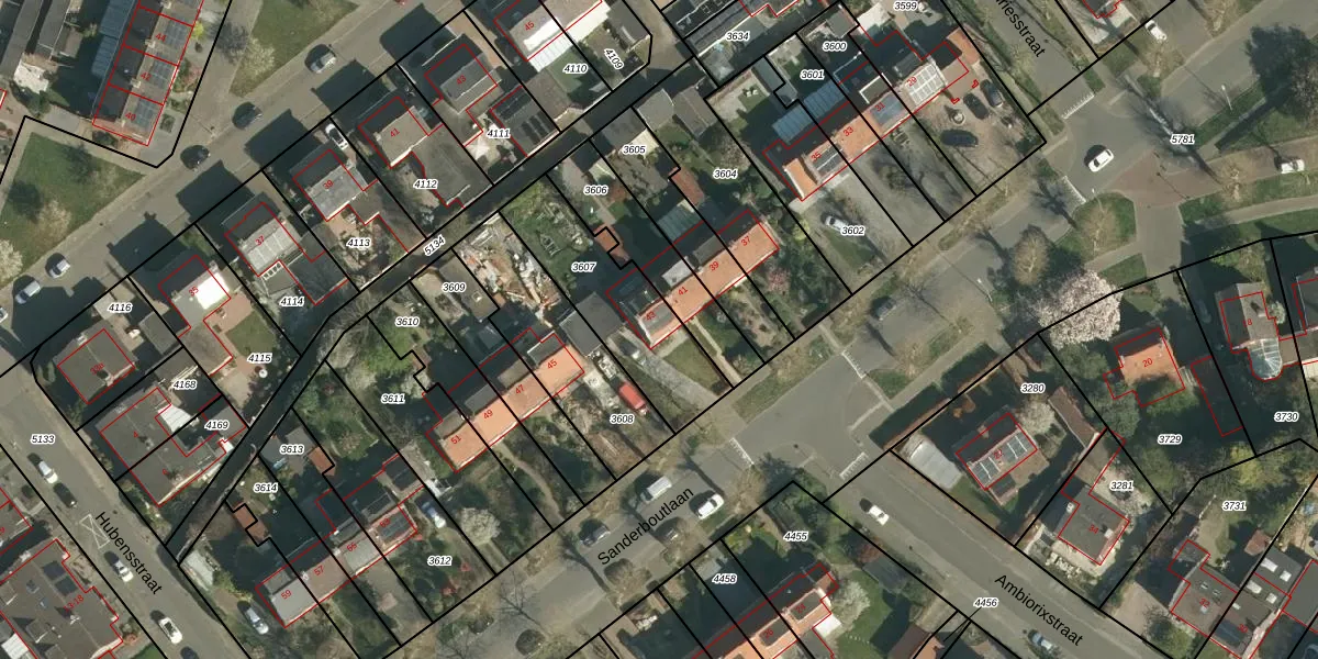 Sanderboutlaan 43 is gelegen op kadastraal perceel STE00B3607. Deze kadastrale aanduiding is uniek en wordt gebruikt door het Kadaster om eigendomsrechten en andere zakelijke rechten vast te leggen. Het perceel maakt onderdeel uit van de kadastrale gemeente Stein.