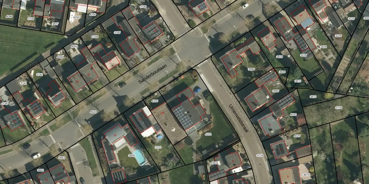 Sanderboutlaan 70 is gelegen op kadastraal perceel STE00C4331. Deze kadastrale aanduiding is uniek en wordt gebruikt door het Kadaster om eigendomsrechten en andere zakelijke rechten vast te leggen. Het perceel maakt onderdeel uit van de kadastrale gemeente Stein.