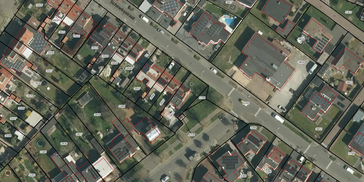 Schineksstraat 54 is gelegen op kadastraal perceel STE00B5822. Deze kadastrale aanduiding is uniek en wordt gebruikt door het Kadaster om eigendomsrechten en andere zakelijke rechten vast te leggen. Het perceel maakt onderdeel uit van de kadastrale gemeente Stein.