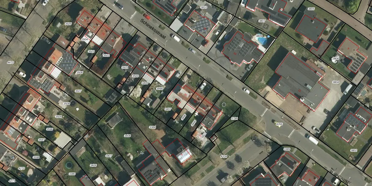 Schineksstraat 60 is gelegen op kadastraal perceel STE00B3497. Deze kadastrale aanduiding is uniek en wordt gebruikt door het Kadaster om eigendomsrechten en andere zakelijke rechten vast te leggen. Het perceel maakt onderdeel uit van de kadastrale gemeente Stein.