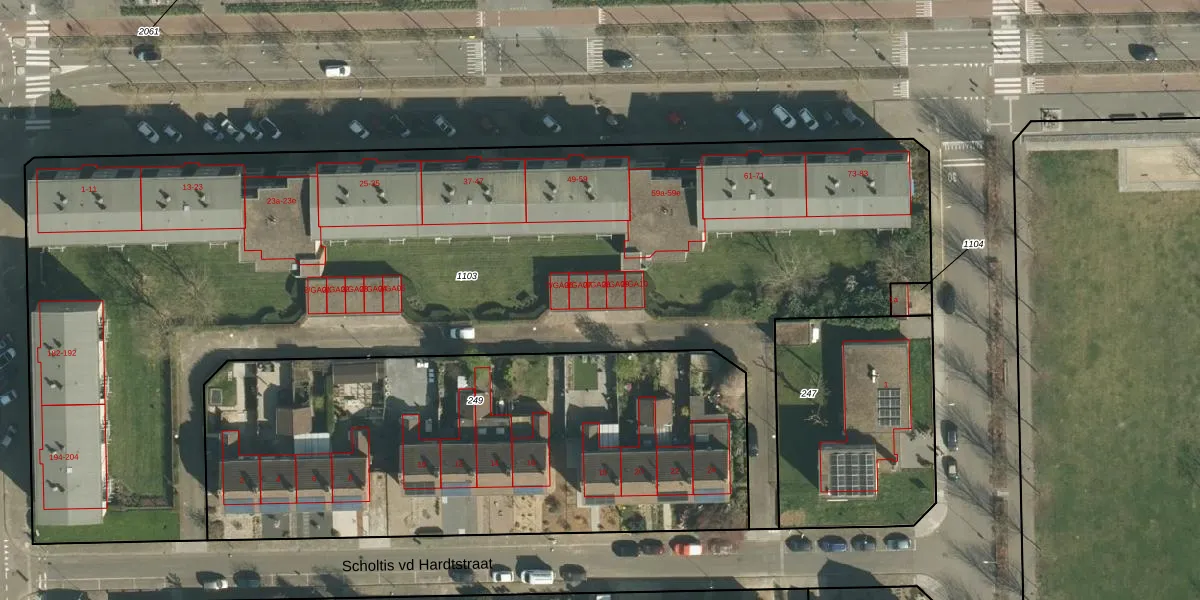 Het perceel waarop Scholtis vd Hardtstraat 2-GA08 staat heeft een oppervlakte van 6060 m². Dit is een zeer groot perceel. De perceeloppervlakte wordt geregistreerd door het Kadaster. Gedetailleerde informatie over de maten van dit perceel kunt u vinden in het rapport Kadastrale kaart met maatvoering van Scholtis vd Hardtstraat 2-GA08.