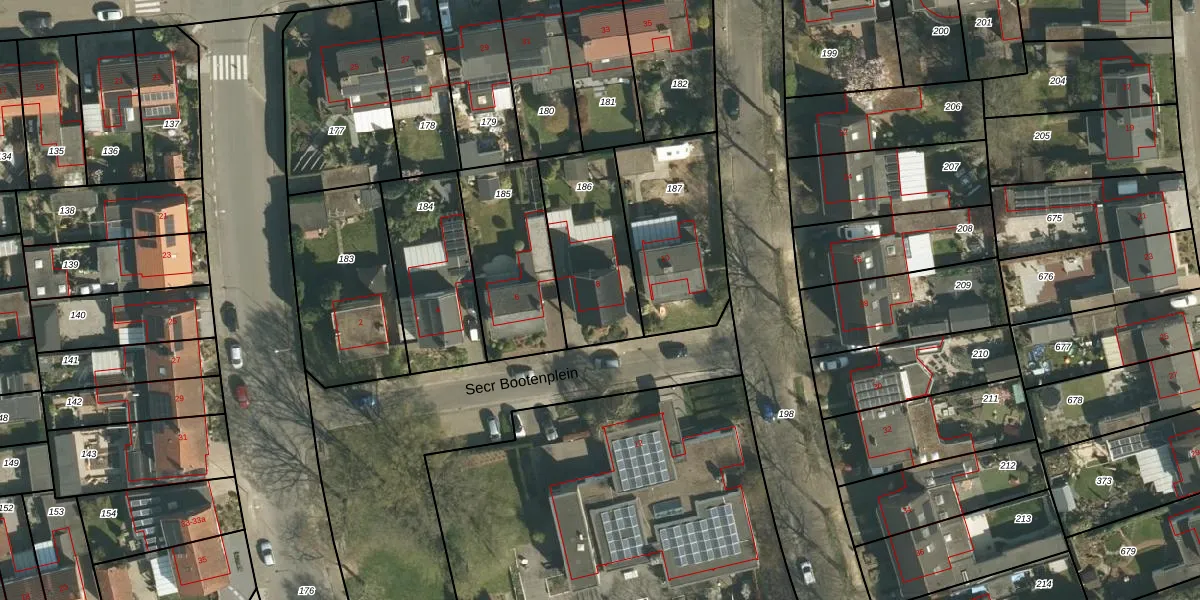 Secr Bootenplein 8 is gelegen op kadastraal perceel STE00G186. Deze kadastrale aanduiding is uniek en wordt gebruikt door het Kadaster om eigendomsrechten en andere zakelijke rechten vast te leggen. Het perceel maakt onderdeel uit van de kadastrale gemeente Stein.