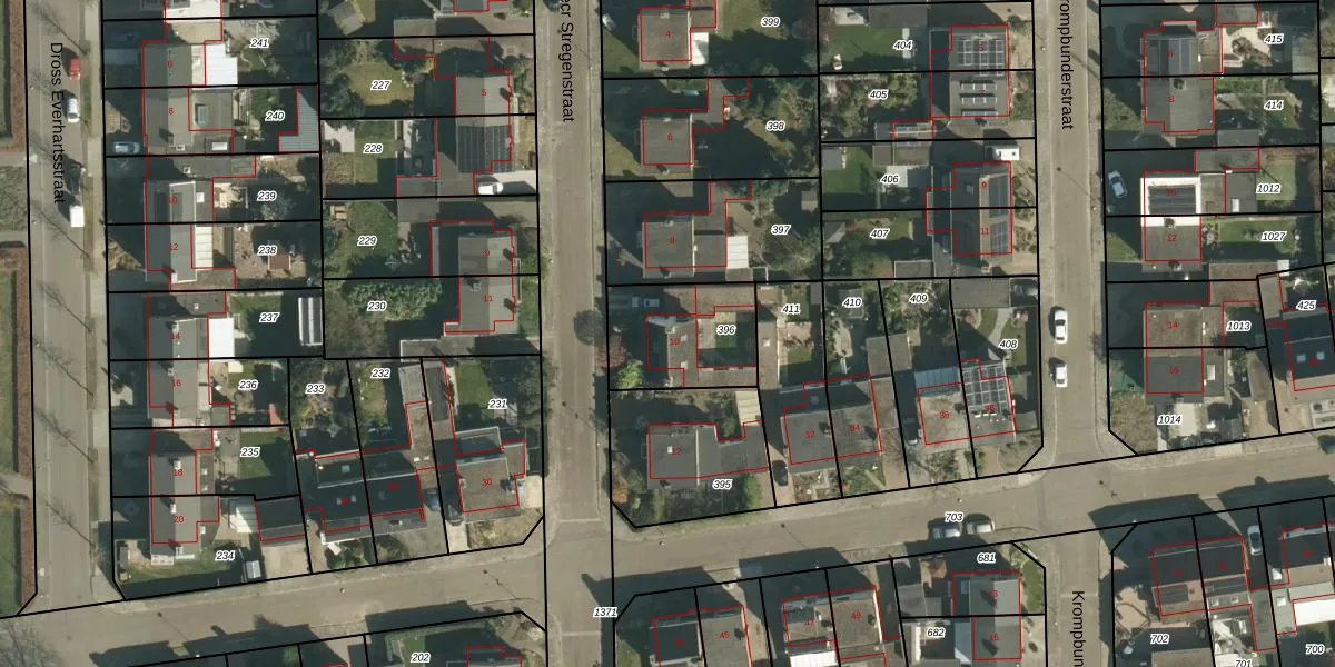Gebruik de zoekbalk of klik op een perceel voor informatie over de adressen binnen dit perceel.
