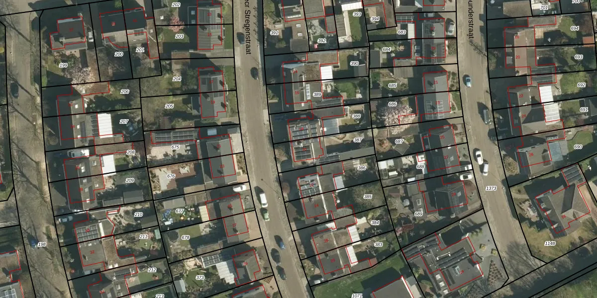 Secr Stregenstraat 20 is gelegen op kadastraal perceel STE00G387. Deze kadastrale aanduiding is uniek en wordt gebruikt door het Kadaster om eigendomsrechten en andere zakelijke rechten vast te leggen. Het perceel maakt onderdeel uit van de kadastrale gemeente Stein.