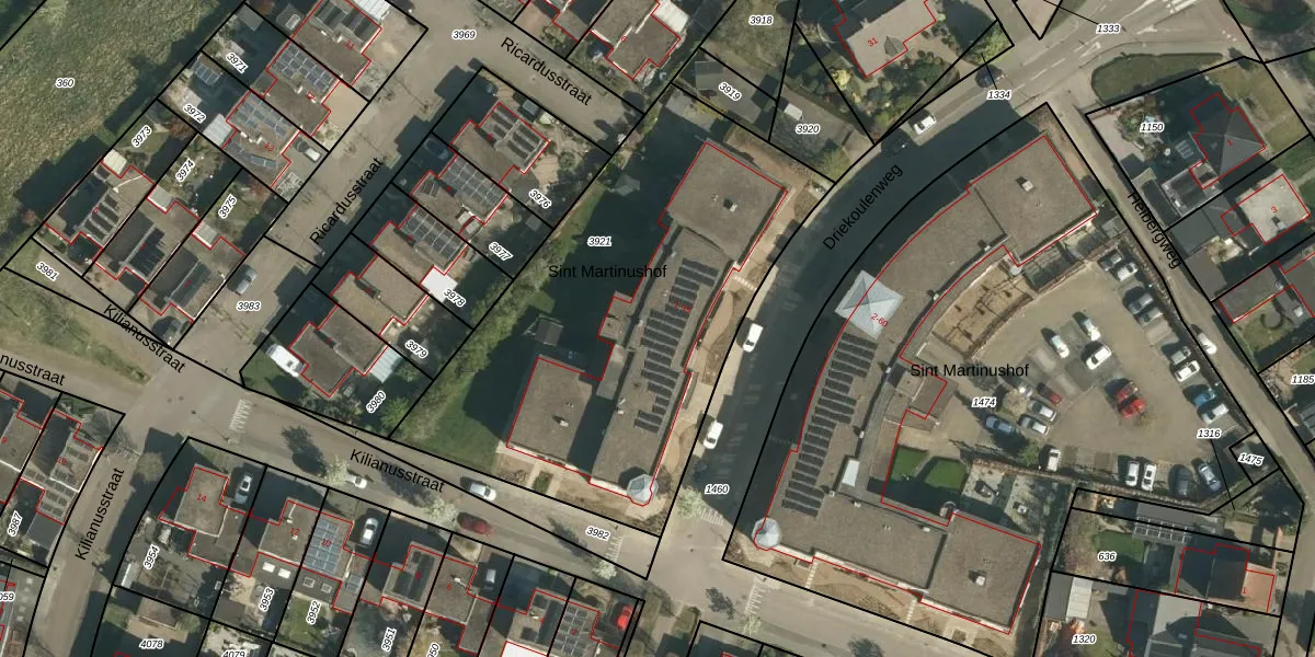 Sint Martinushof 21 is gelegen op kadastraal perceel STE00D3921. Deze kadastrale aanduiding is uniek en wordt gebruikt door het Kadaster om eigendomsrechten en andere zakelijke rechten vast te leggen. Het perceel maakt onderdeel uit van de kadastrale gemeente Stein.