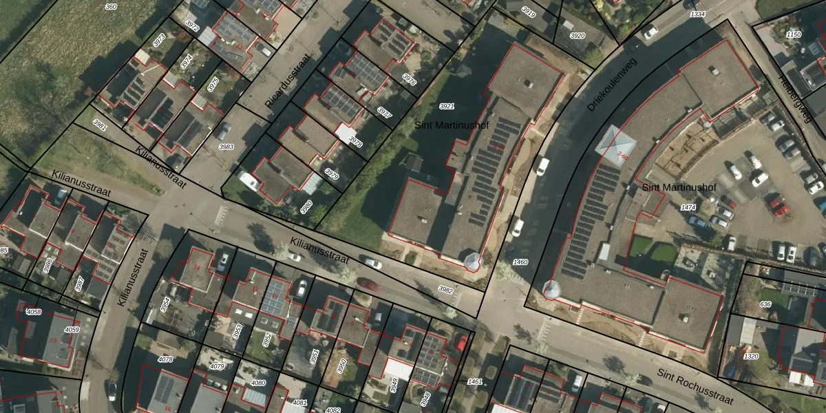 Sint Martinushof 29 is gelegen op kadastraal perceel STE00D3921. Deze kadastrale aanduiding is uniek en wordt gebruikt door het Kadaster om eigendomsrechten en andere zakelijke rechten vast te leggen. Het perceel maakt onderdeel uit van de kadastrale gemeente Stein.
