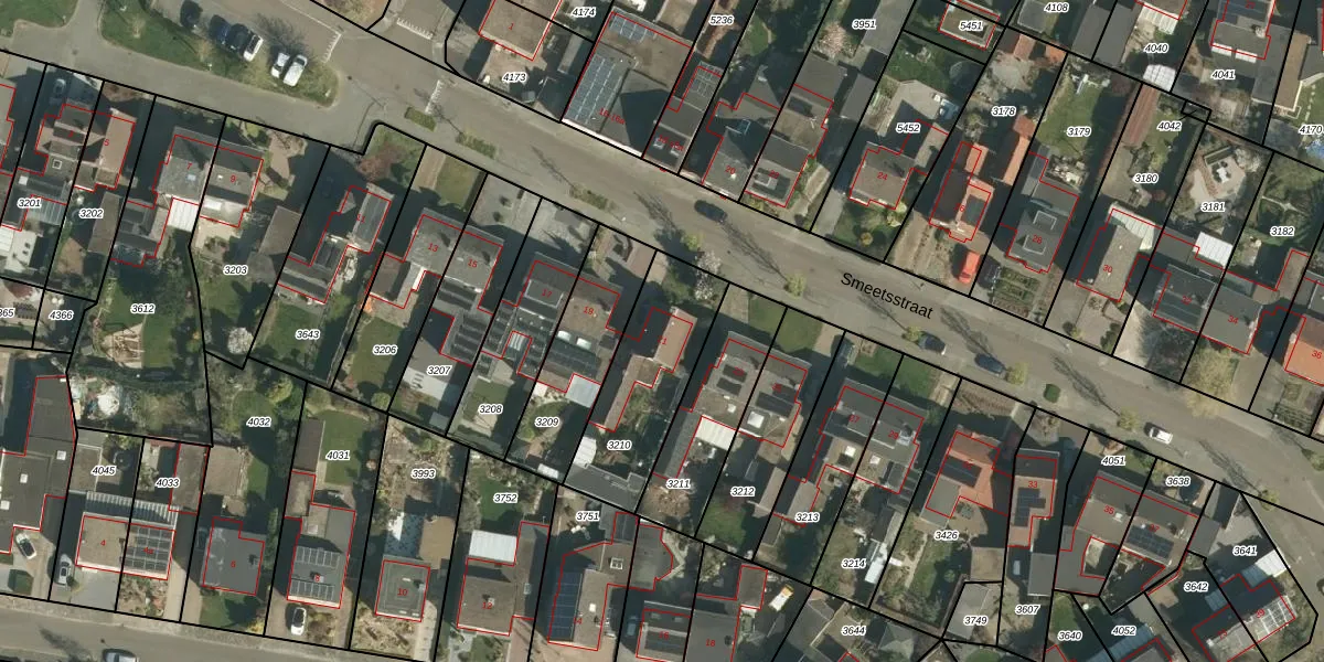 Het perceel waarop Smeetsstraat 21 staat heeft een oppervlakte van 454 m². Dit is een groot perceel. De perceeloppervlakte wordt geregistreerd door het Kadaster. Gedetailleerde informatie over de maten van dit perceel kunt u vinden in het rapport Kadastrale kaart met maatvoering van Smeetsstraat 21.