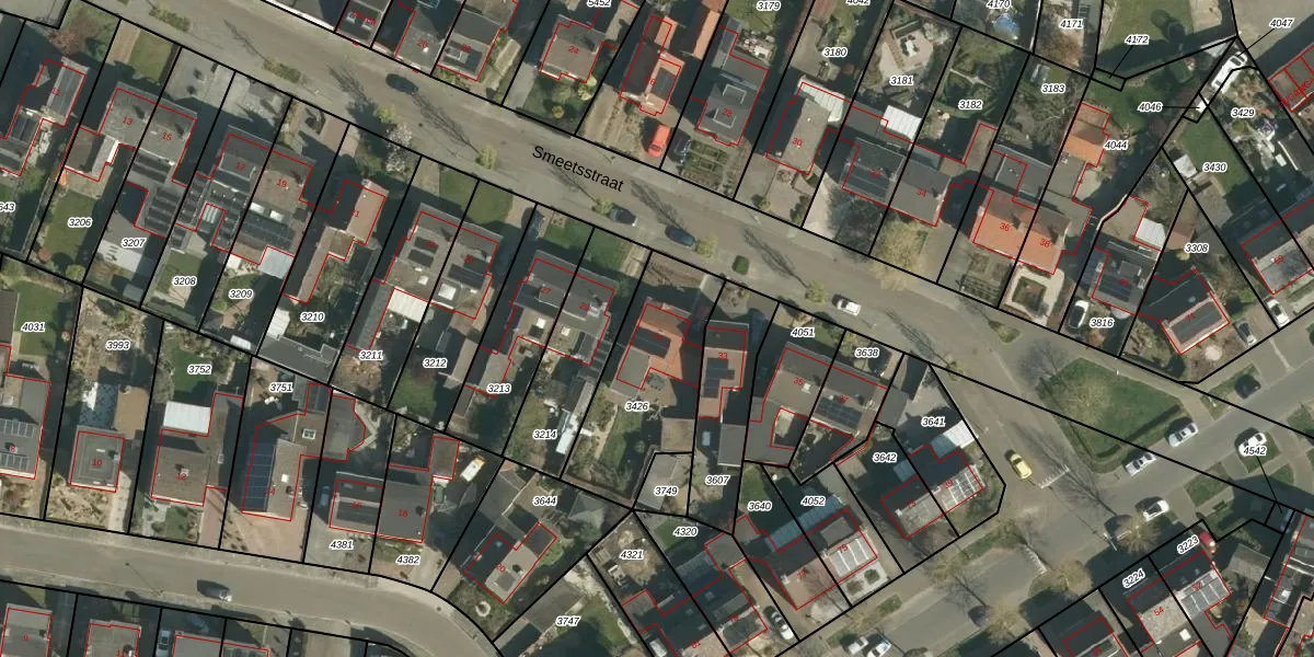 Het perceel waarop Smeetsstraat 31 staat heeft een oppervlakte van 507 m². Dit is een groot perceel. De perceeloppervlakte wordt geregistreerd door het Kadaster. Gedetailleerde informatie over de maten van dit perceel kunt u vinden in het rapport Kadastrale kaart met maatvoering van Smeetsstraat 31.