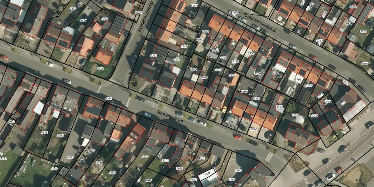 Het perceel waarop Smeetsstraat 70 staat heeft een oppervlakte van 235 m². Dit is een middelgroot perceel. De perceeloppervlakte wordt geregistreerd door het Kadaster. Gedetailleerde informatie over de maten van dit perceel kunt u vinden in het rapport Kadastrale kaart met maatvoering van Smeetsstraat 70.