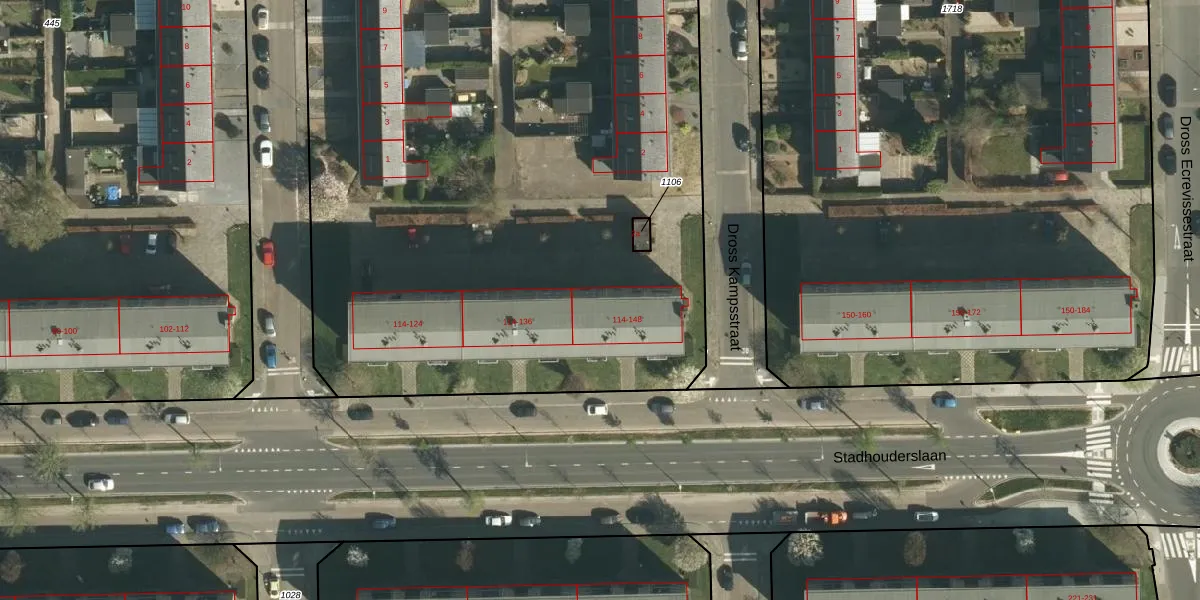 Stadhouderslaan 114-GA40 is gelegen op kadastraal perceel STE00G1105. Deze kadastrale aanduiding is uniek en wordt gebruikt door het Kadaster om eigendomsrechten en andere zakelijke rechten vast te leggen. Het perceel maakt onderdeel uit van de kadastrale gemeente Stein.