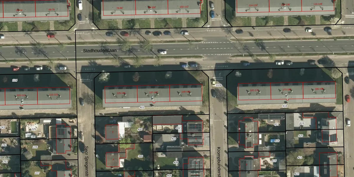 Stadhouderslaan 149 is gelegen op kadastraal perceel STE00G401. Deze kadastrale aanduiding is uniek en wordt gebruikt door het Kadaster om eigendomsrechten en andere zakelijke rechten vast te leggen. Het perceel maakt onderdeel uit van de kadastrale gemeente Stein.