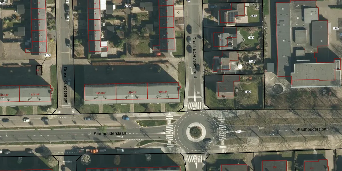 Stadhouderslaan 150-GA33 is gelegen op kadastraal perceel STE00G1718. Deze kadastrale aanduiding is uniek en wordt gebruikt door het Kadaster om eigendomsrechten en andere zakelijke rechten vast te leggen. Het perceel maakt onderdeel uit van de kadastrale gemeente Stein.