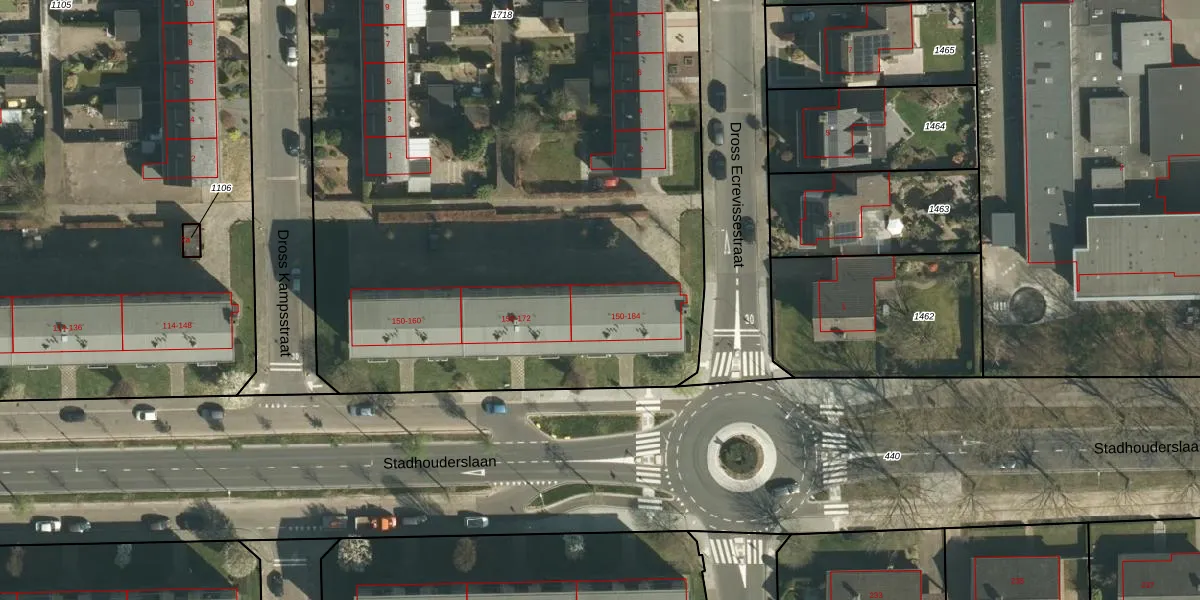 Stadhouderslaan 150-GA34 is gelegen op kadastraal perceel STE00G1718. Deze kadastrale aanduiding is uniek en wordt gebruikt door het Kadaster om eigendomsrechten en andere zakelijke rechten vast te leggen. Het perceel maakt onderdeel uit van de kadastrale gemeente Stein.