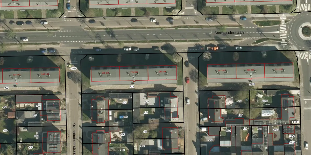 Stadhouderslaan 161-GA25 is gelegen op kadastraal perceel STE00G418. Deze kadastrale aanduiding is uniek en wordt gebruikt door het Kadaster om eigendomsrechten en andere zakelijke rechten vast te leggen. Het perceel maakt onderdeel uit van de kadastrale gemeente Stein.