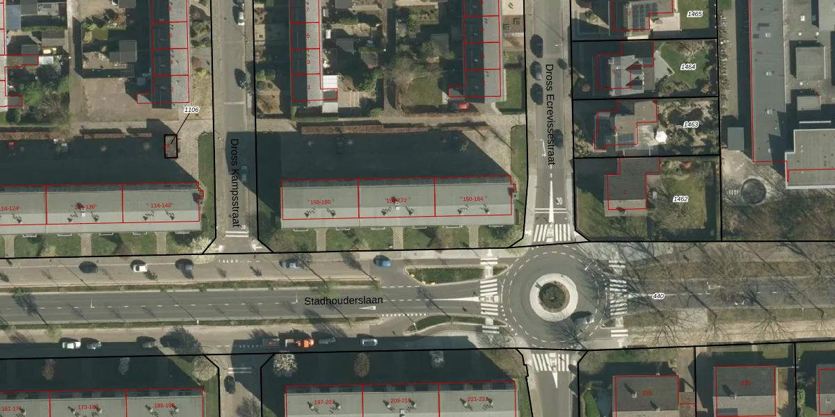 Stadhouderslaan 164 is gelegen op kadastraal perceel STE00G1718. Deze kadastrale aanduiding is uniek en wordt gebruikt door het Kadaster om eigendomsrechten en andere zakelijke rechten vast te leggen. Het perceel maakt onderdeel uit van de kadastrale gemeente Stein.