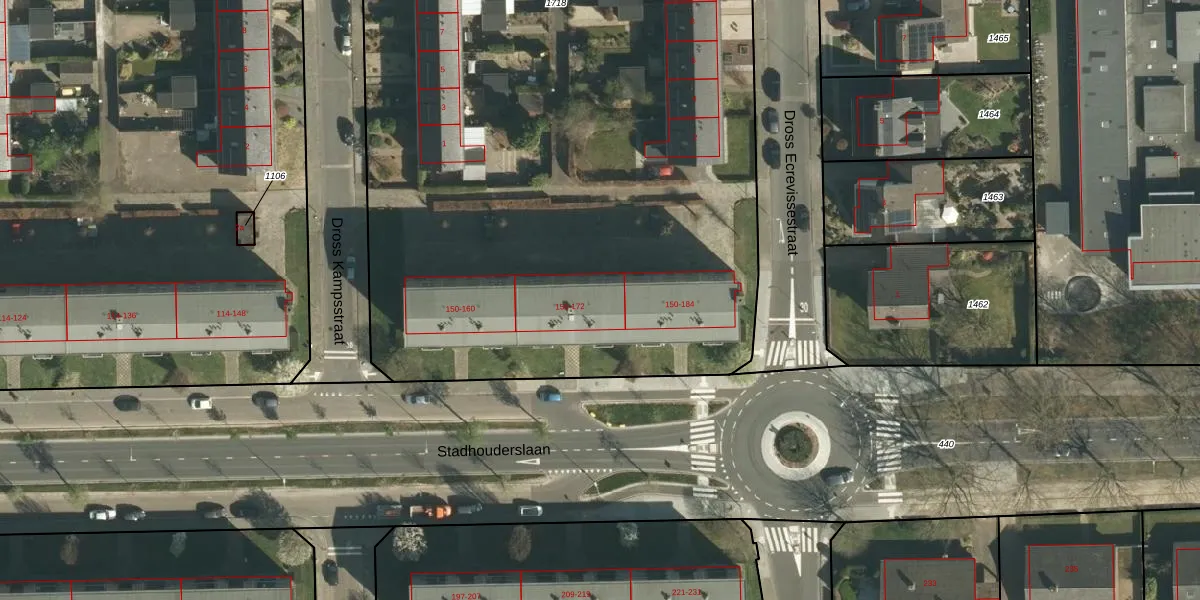 Stadhouderslaan 168 is gelegen op kadastraal perceel STE00G1718. Deze kadastrale aanduiding is uniek en wordt gebruikt door het Kadaster om eigendomsrechten en andere zakelijke rechten vast te leggen. Het perceel maakt onderdeel uit van de kadastrale gemeente Stein.