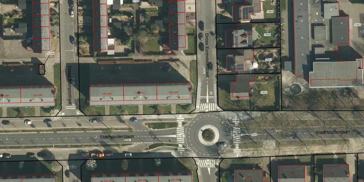 Het perceel waarop Stadhouderslaan 180 staat heeft een oppervlakte van 7420 m². Dit is een zeer groot perceel. De perceeloppervlakte wordt geregistreerd door het Kadaster. Gedetailleerde informatie over de maten van dit perceel kunt u vinden in het rapport Kadastrale kaart met maatvoering van Stadhouderslaan 180.