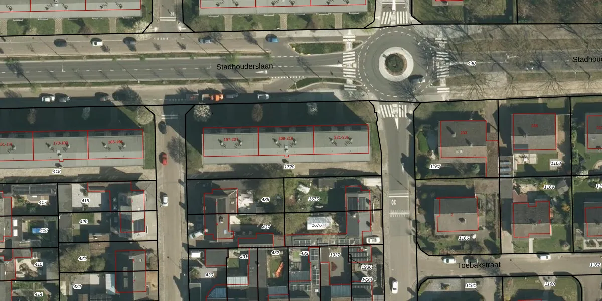 Het perceel waarop Stadhouderslaan 219 staat heeft een oppervlakte van 1594 m². Dit is een zeer groot perceel. De perceeloppervlakte wordt geregistreerd door het Kadaster. Gedetailleerde informatie over de maten van dit perceel kunt u vinden in het rapport Kadastrale kaart met maatvoering van Stadhouderslaan 219.