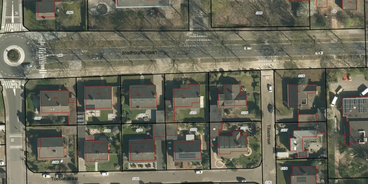 Het perceel waarop Stadhouderslaan 239 staat heeft een oppervlakte van 648 m². Dit is een groot perceel. De perceeloppervlakte wordt geregistreerd door het Kadaster. Gedetailleerde informatie over de maten van dit perceel kunt u vinden in het rapport Kadastrale kaart met maatvoering van Stadhouderslaan 239.